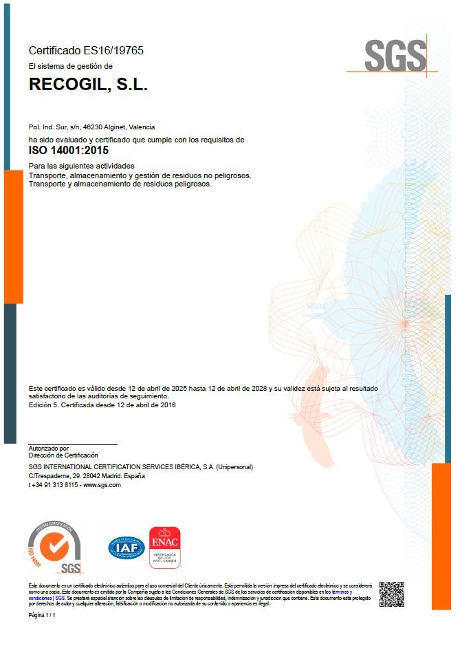 En Recogil SL, disponemos de todas las certificaciones requeridas, para poder realizar nuestros trabajos, y cumplir la legalidad requerida para poder realizarlos.
